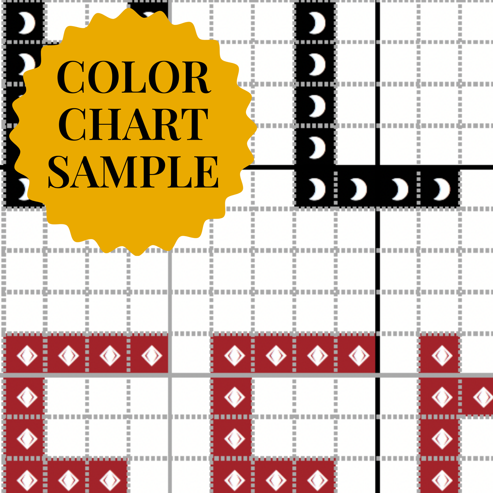 * DMC floss color guide (2 colors, one of which is a DMC Mouliné Étoile thread that can be changed to the same color in DMC's regular floss)