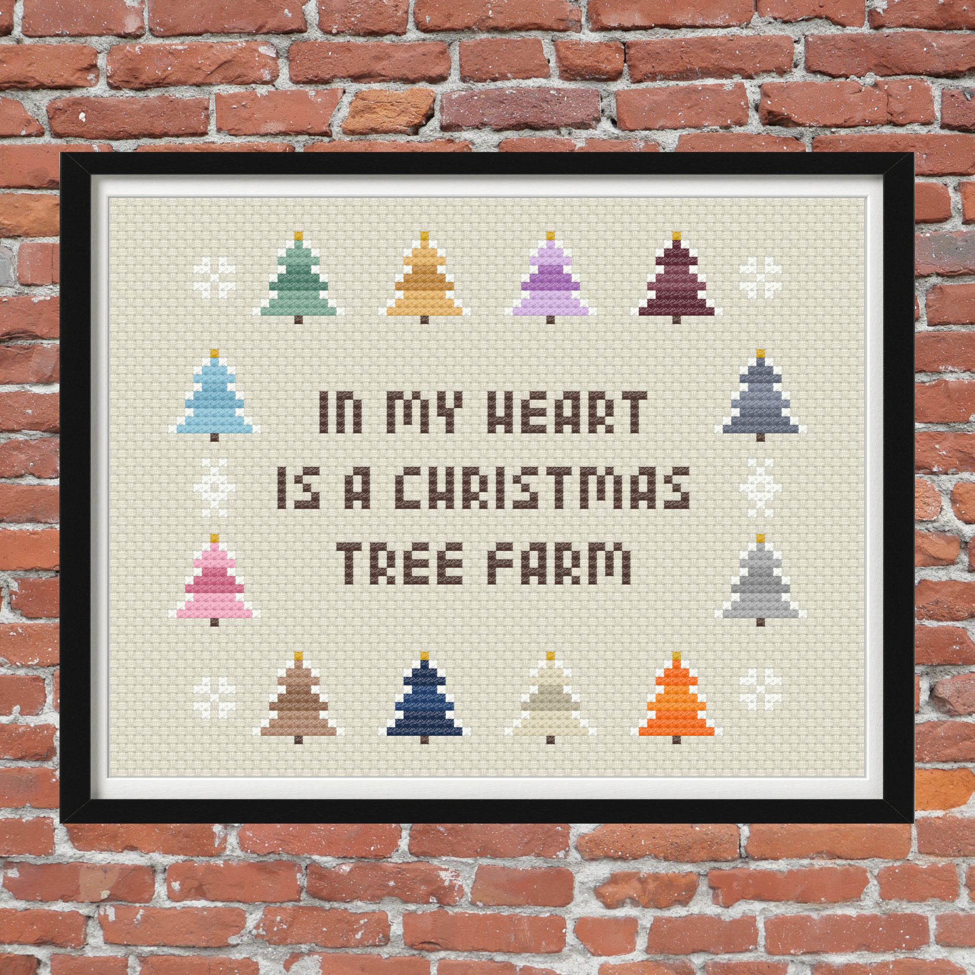 In My Heart is a Christmas Tree Farm – Taylor Swift Holiday Lyric – Eras Tour – Instant PDF Download – Modern Mini Cross Stitch Pattern