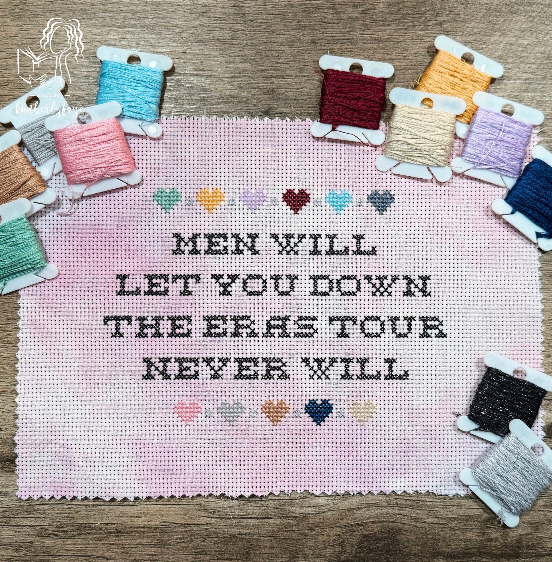 This cross stitch pattern is inspired by the iconic quote from the Eras Tour docuseries: “Men will let you down. The Eras Tour never will.” It’s a fun, bold tribute to the tour that Swifties know will always deliver.