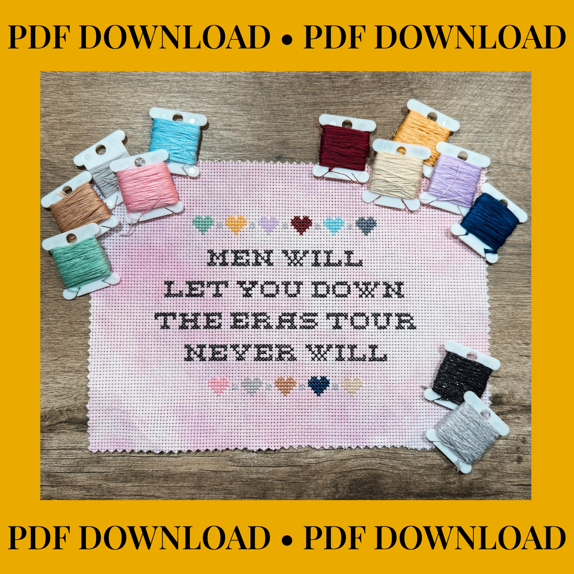 Men Will Let You Down, The Eras Tour Never Will – Quote – Instant PDF Download – Cross Stitch Pattern